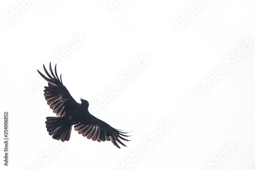 © Reto, Obraz premium Isolated crow in flight with fully open wings on white background