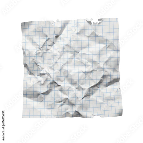 © yendisupiandi, Obraz premium Isolated crumpled graph paper square with transparent backdrop for versatile design usage