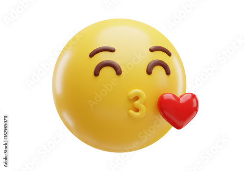 © Ryan, Fototapeta premium Isolated Cute Blowing Kiss Emoji with Red Heart, Expressing Love and Affection