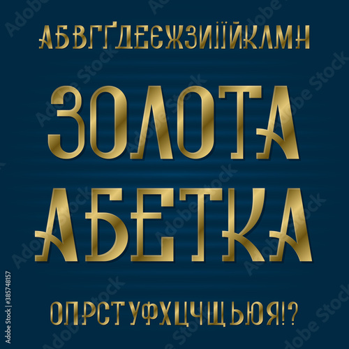 Fototapeta premium Isolated cyrillic alphabet. Title in Ukrainian - Gold ABC. Golden retro font.