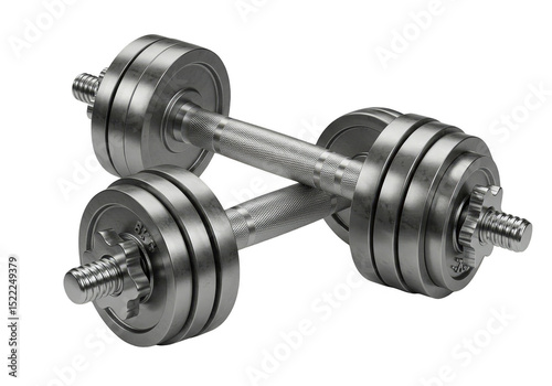 © Christopher, Fototapeta premium Isolated 3D Rendering of Chrome Dumbbell for Fitness with Transparent BG