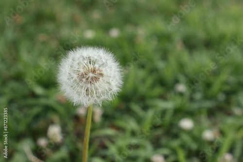 © Mina, Fototapeta premium Isolated dandelion flower on a grass field background