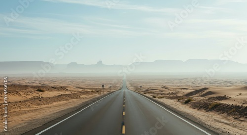 Fototapeta premium Isolated desert highway leading into an endless, misty distance beneath a...