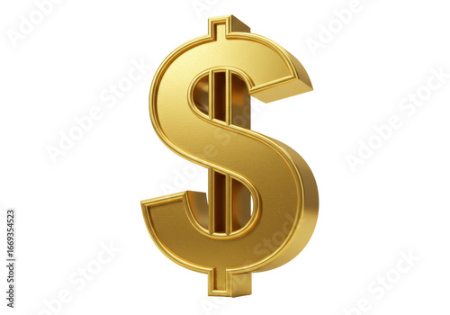 © Freya, Fototapeta premium Isolated Detailed Gold Dollar Sign Symbol Depicting Wealth and Finance on a White Background