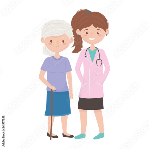© Stockgiu, Fototapeta premium Isolated doctor with old woman vector design