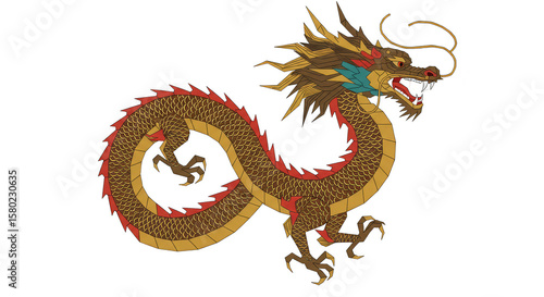 Obraz premium Isolated Dragon Illustration Asian Symbol Oriental Mythical Golden Animal