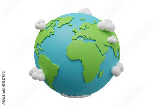 © Marcel, Naklejka premium Isolated Earth Globe with Cartoon Clouds