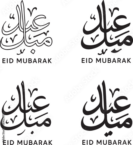 © MD.Kawsar Hossan, Obraz premium Isolated eid mubarak icon, eid mubarak calligraphy silhouette, islamic greeting celebration design, ramadan eid festival typography vector