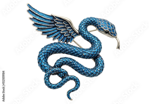 Obraz premium Isolated Elegant Winged Serpent Brooch with Blue Enamel