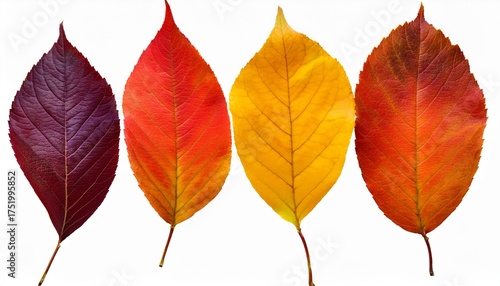 © Molly, Fototapeta premium Isolated Fall Leaves In A Spectrum Of Colors As A Scene Element Yellow Orange Red And Purple Leaves As Objects For Composite Photography