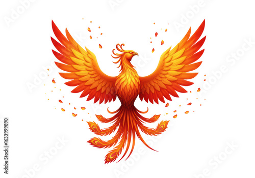 Obraz premium Isolated Fiery Phoenix Rising from Ashes