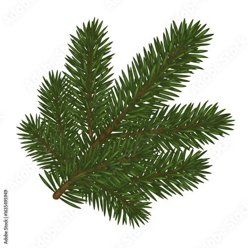 © Ellene, Naklejka premium Isolated Fir Branch Illustration With Green Needles and Brown Twig