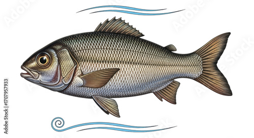 Obraz premium Isolated Fish on White Background, Aquatic Animal Illustration, Freshwater...