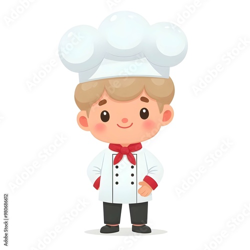 © Mroja, Obraz premium Isolated flat-style illustration of cute chef on wite background.