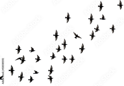© Bogdan, Naklejka premium Isolated Flock of Birds Flying in Formation Silhouettes