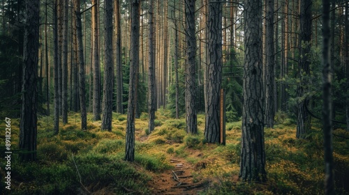Fototapeta premium Isolated forest with no people. Useful as a wallpaper for websites or online...