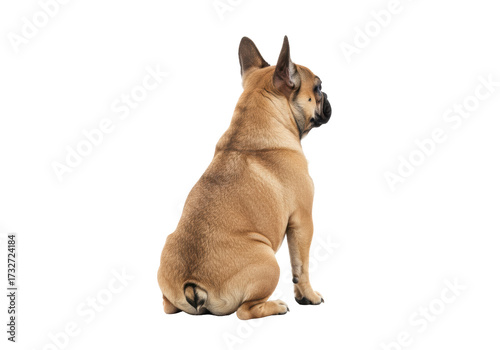 Obraz premium Isolated French Bulldog is sitting down and looking back with inquisitive expression