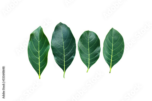 Obraz premium Isolated fresh and green leaves of jackfruit, clipping paths.