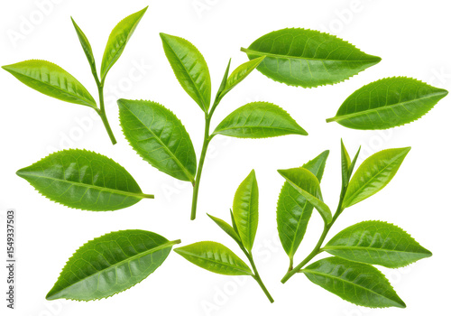 © Lucas, Fototapeta premium Isolated Fresh Green Tea Twigs on White Background