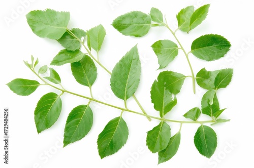 © vxnaghiyev, Fototapeta premium Isolated fresh moringa leaves on a plain white surface