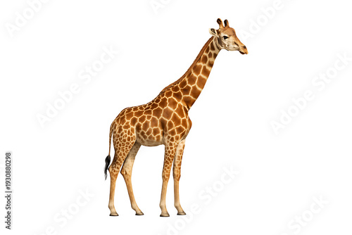 © Hiya, Obraz premium Isolated giraffe side view with detailed spots and long neck on transparent background