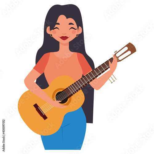 Obraz premium Isolated girl black head with guitar hygge style icon - Vector