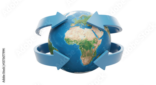 Naklejka premium Isolated Globe Surrounded by Arrows Signifying Global Circulation