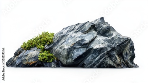 © Cucoo, Naklejka premium Isolated gray rock with small green plants.