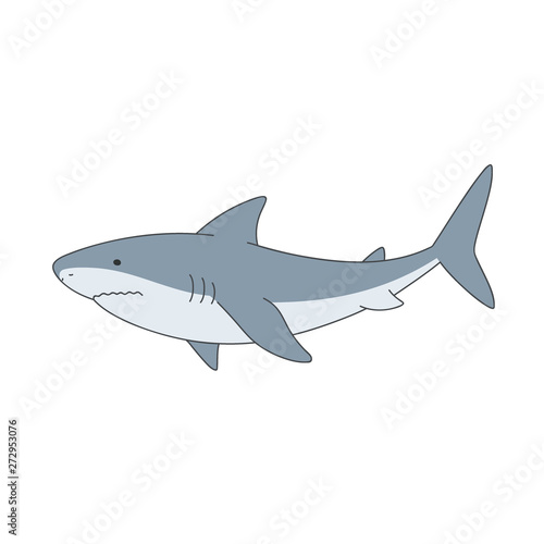 Fototapeta premium Isolated gray shark on white background. Sea animal, fish. Colorful flat shark.
