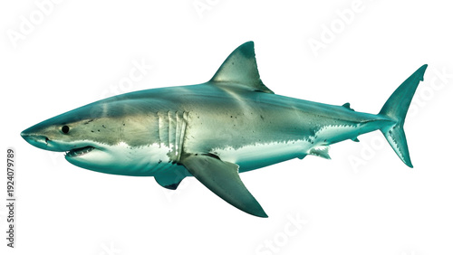 © Patricia, Fototapeta premium Isolated Great White Shark Carries Dangerous Reputation in Ocean, Marine Apex Predator
