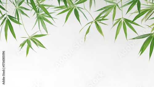 © pngking, Naklejka premium Isolated green bamboo foliage on a white backdrop, design element for summer, nature and tree concept, space for text, grass and leaf detail