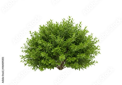 Fototapeta premium Isolated green bush with small leaves on a white background, showing a compact and lush growth pattern