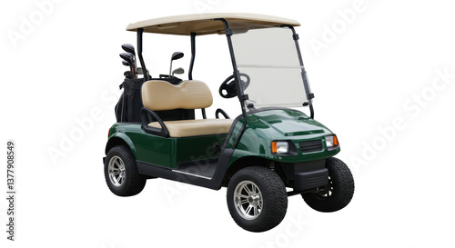 © Nicolae, Fototapeta premium Isolated Green Golf Cart with Clubs