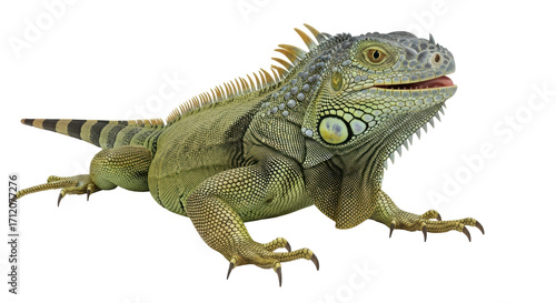© Andrei, Fototapeta premium Isolated Green Iguana, exotic reptile lizard, wildlife animal with textured skin, close-up