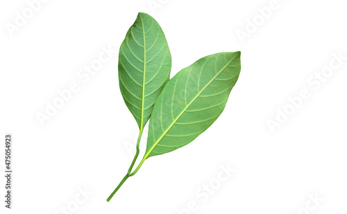 Fototapeta premium Isolated green leaf of jackfruit with clipping paths.