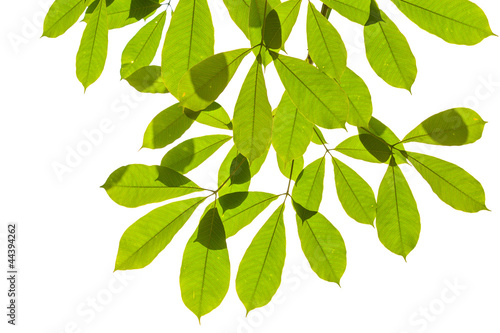 © SuriyaPhoto, Fototapeta premium Isolated green leaf on white background with clipping path