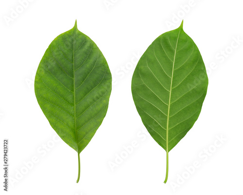 © kpboonjit, Fototapeta premium Isolated green leaf with the front and the back on white background