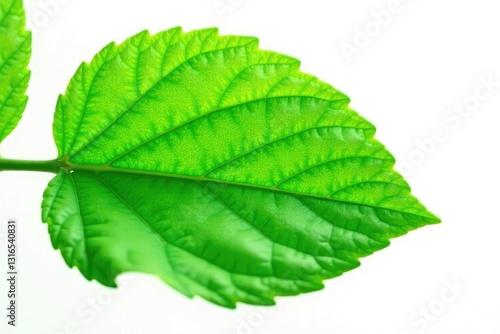 © Uravan, Obraz premium Isolated green leaf with veins and texture, against a clean white background, plant, botany