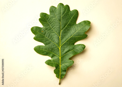 © Md, Obraz premium Isolated green oak leaf close up on a light background for botanical or nature designs use now