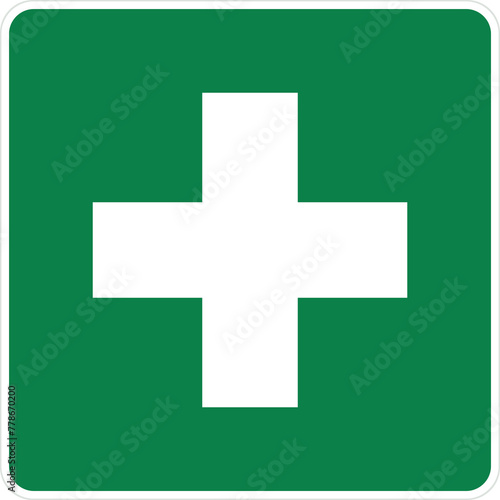 © AndiPoe, Fototapeta premium Isolated green rectangle label of medical first aid kit, printable sign