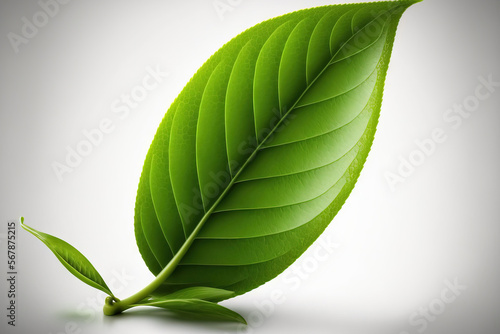 © The 2R Artificiality, Fototapeta premium isolated green tea leaf on a white background. Generative AI