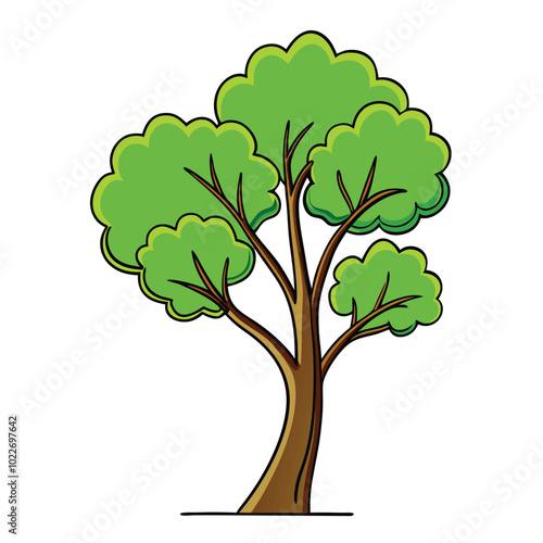 © Cinco, Obraz premium Isolated green tree continuous one line drawing
