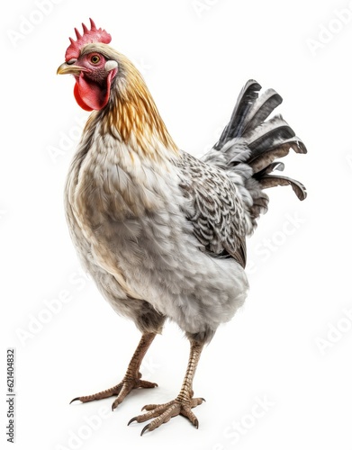 © monsifdx, Fototapeta premium Isolated Grey Chicken Standing in Front of White Background Generative AI