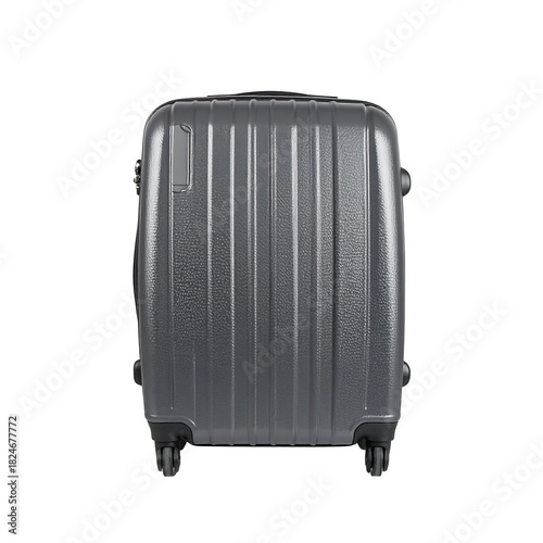 © MDNASIR, Fototapeta premium Isolated Grey Hard-Shell Carry-On Luggage with Vertical Ribs