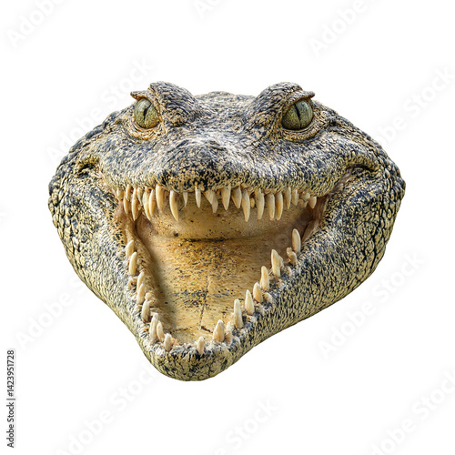 © GMeta, Obraz premium Isolated grinning crocodile headshot showcasing numerous teeth for a striking image perfect for your design needs