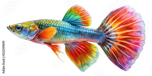 © Sandra, Fototapeta premium Isolated guppy fish PNG. Minimalist, abstract design. Aquatic illustration.