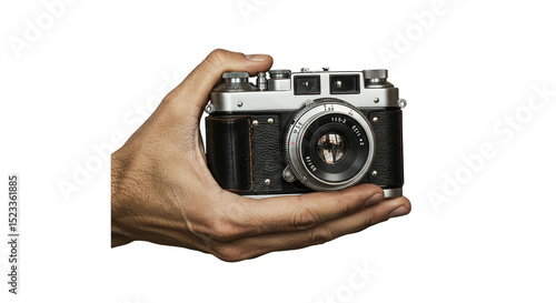 Fototapeta premium Isolated Hand Holding Vintage Camera Lens with Transparent Background