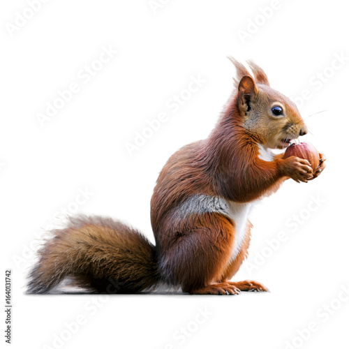 Obraz premium Isolated high-resolution image of red squirrel with detailed fur and fluffy tail.