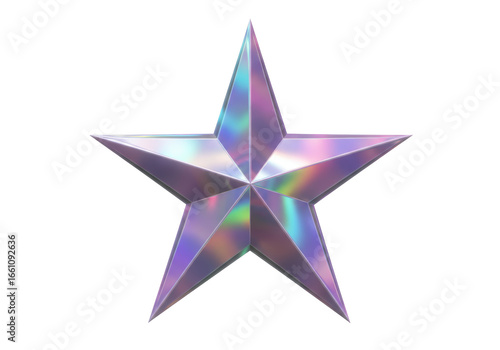 Obraz premium Isolated Holographic Shiny Five-Pointed Star on White Background