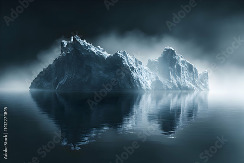 © Sri, Fototapeta premium Isolated Iceberg In Dark Water With Foggy Atmosphere
